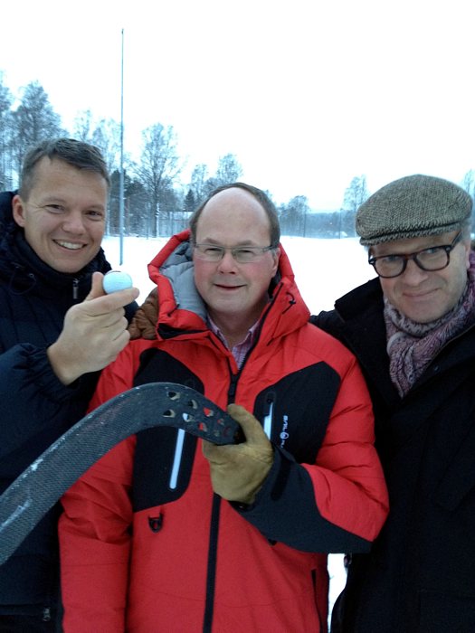 Martin Sternberg (Golfplatzarchitekt) mit Bo Callander (Ideengeber und Präsident des Bandy Clubs) sowie Martin Novotny (Planer und Architekt des Vinterparadis)